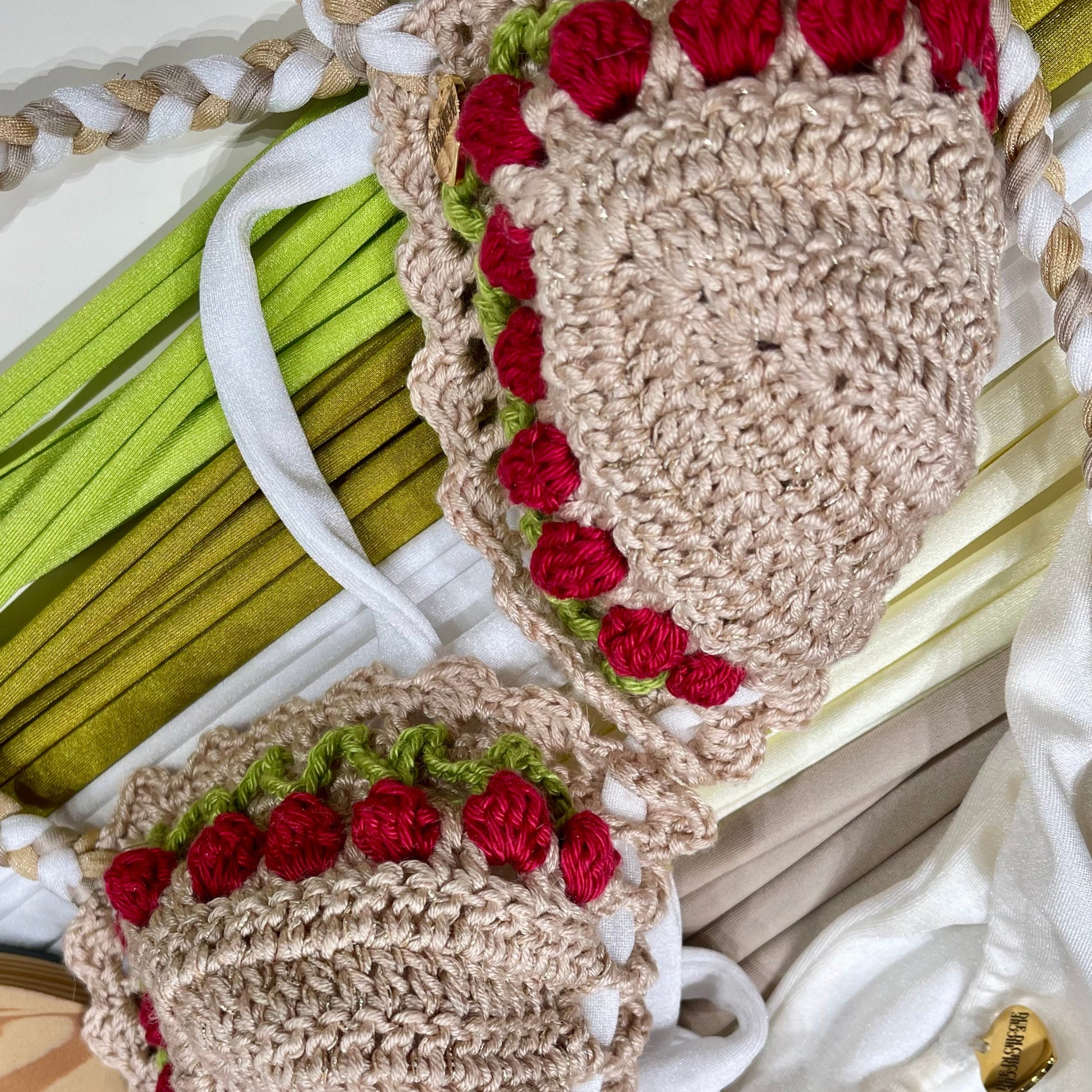 Ogni bikini DUEDICHICCHE nasce da una lavorazione artigianale fatta a mano, dove filati pregiati e dettagli curati si fondono in un'estetica boho-chic sofisticata.