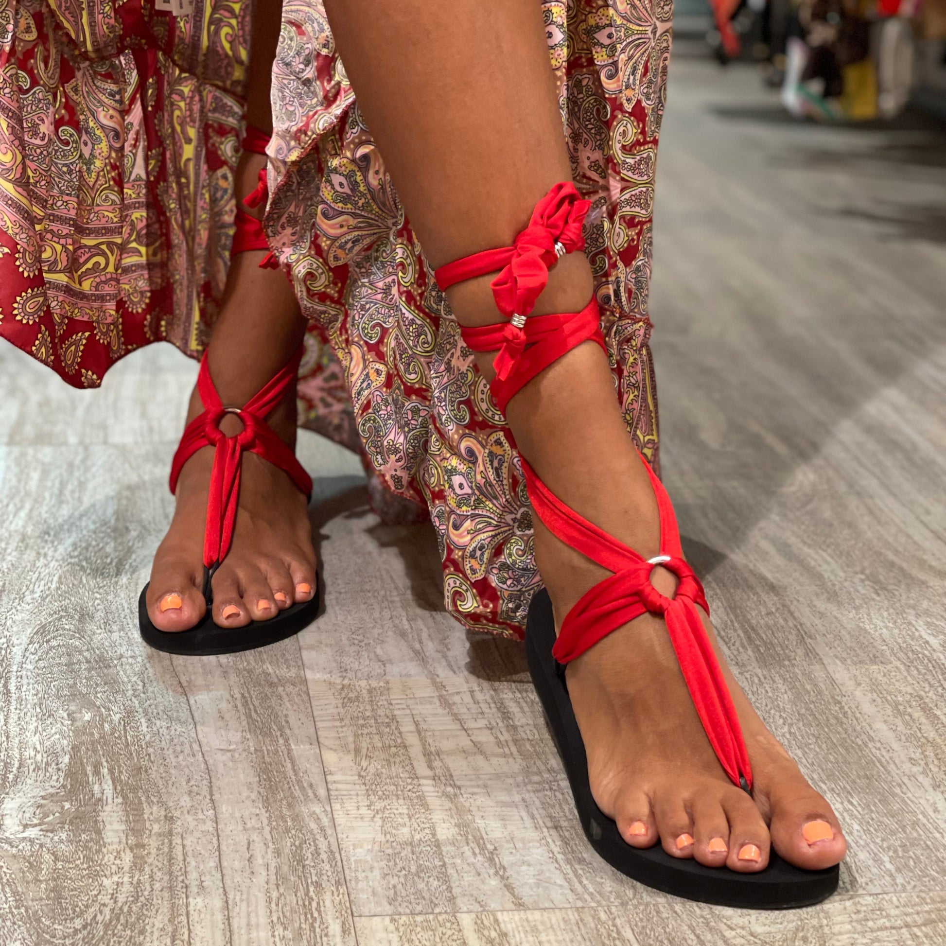 Lacci in Lycra morbidi e flessibili che avvolgono il piede con incroci eleganti, salendo fino alla caviglia