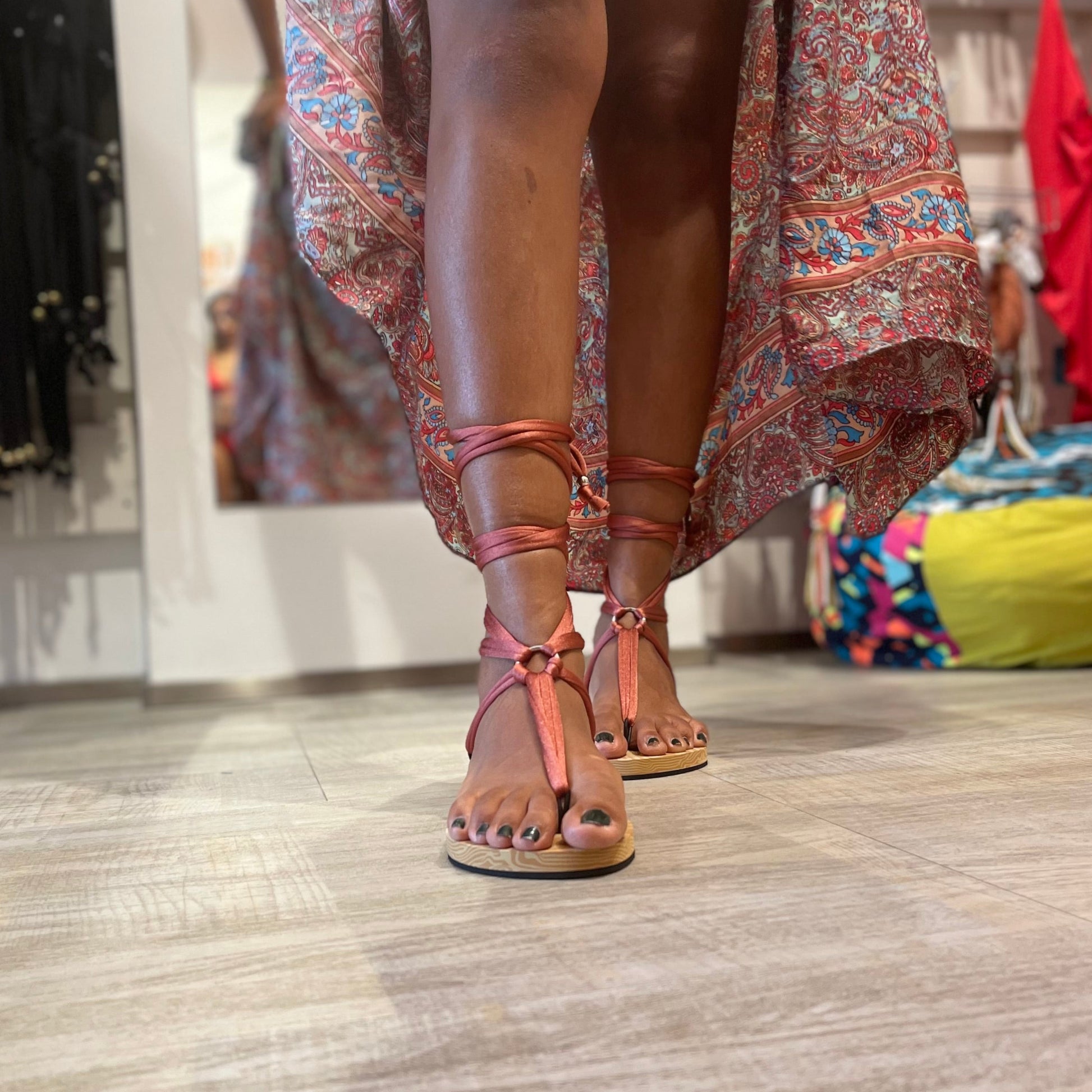 Dai colori, intensi e cangianti alla luce, donano profondità e personalità al sandalo. Disponibili in tante nuance: dalle tonalità nude a quelle più vivaci o metallizzate, ogni colore riflette la luce con un effetto raffinato e luminoso.