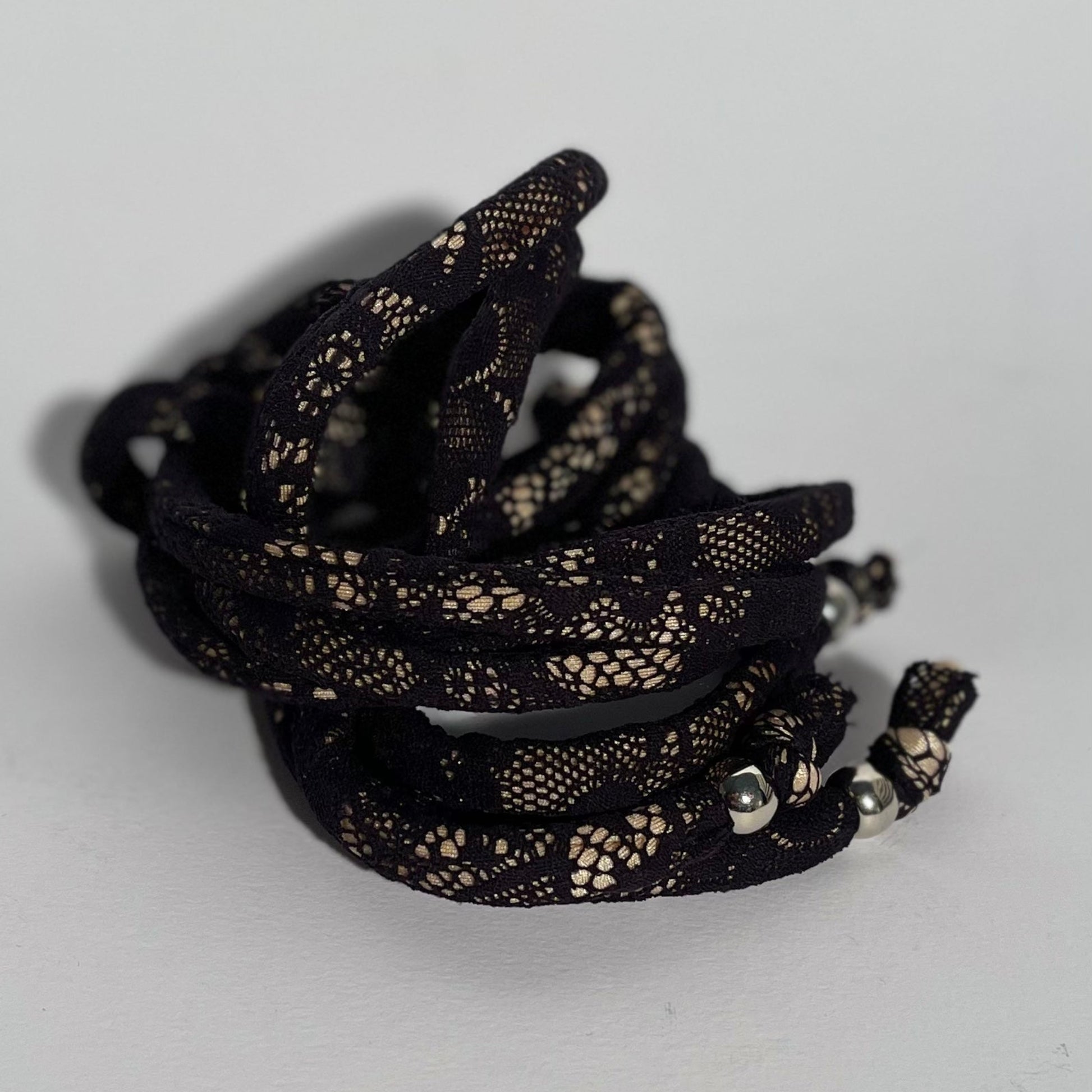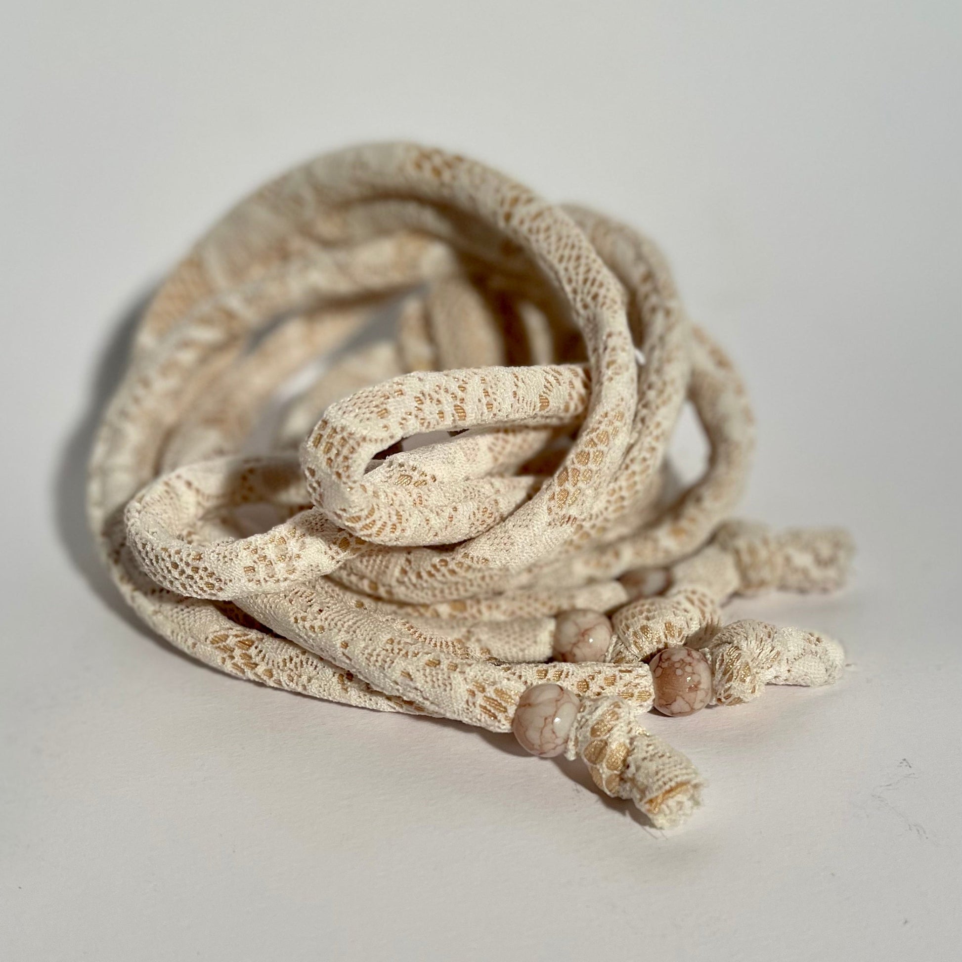 Laccio elastico con anima in tessuto color nudo, rivestito da un raffinato pizzo disponibile in vari colori, oppure in tulle simil animalier. Morbido, flessibile e super femminile, dona un tocco romantico e delicato al tuo sandalo.